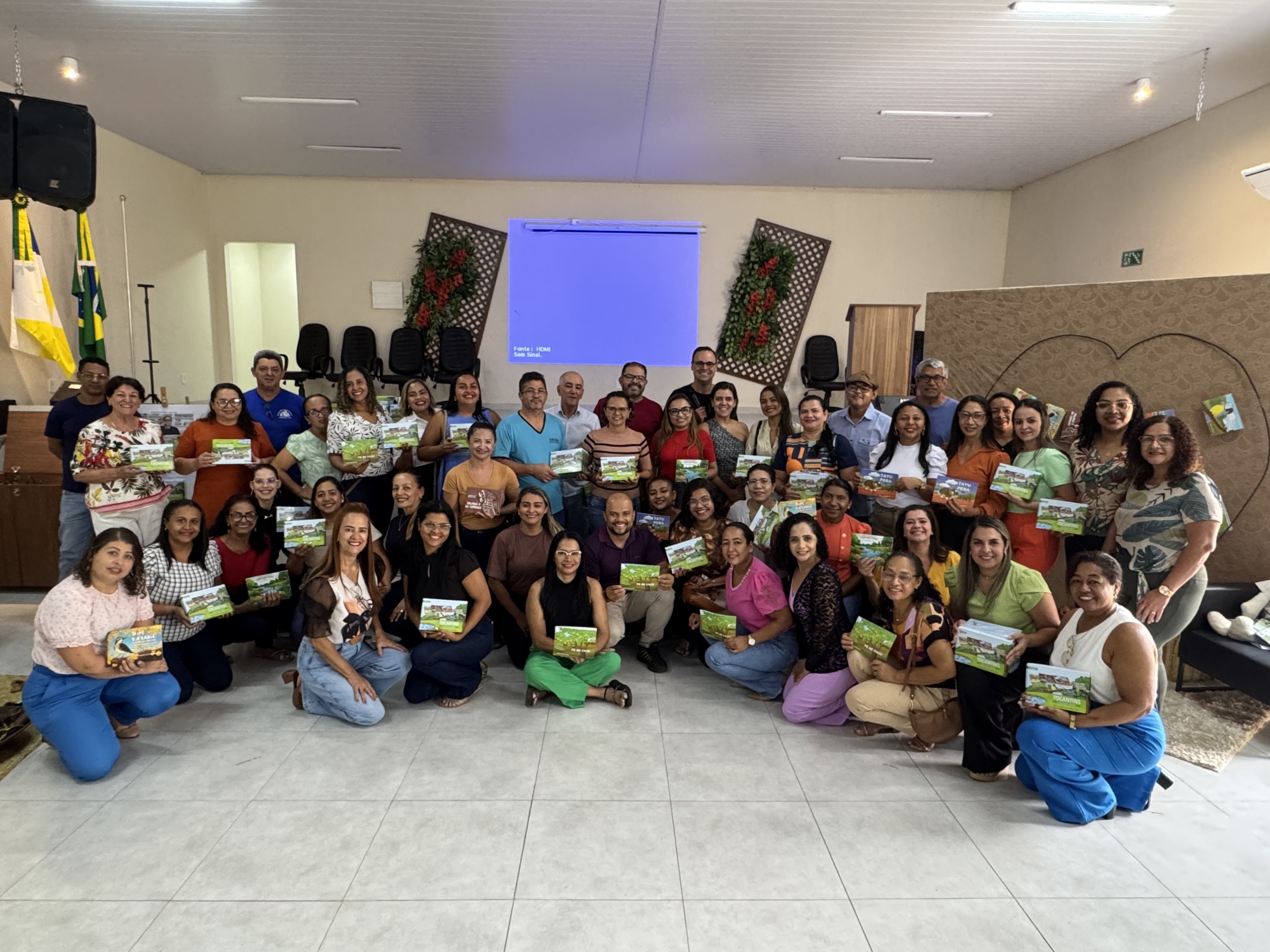 Durante o evento, professores, coordenadores pedagógicos e gestores participaram de uma palestra formativa com o autor da obra, reforçando o compromisso com a formação contínua dos profissionais da educação. Além disso, apresentações culturais encantaram o público presente, como a do CMEI O Pelicano, baseada no livro Arara Canindé, e a da Escola Municipal Irmã Amparo, inspirada no livro Pé de Caju – ambos da coletânea do autor.