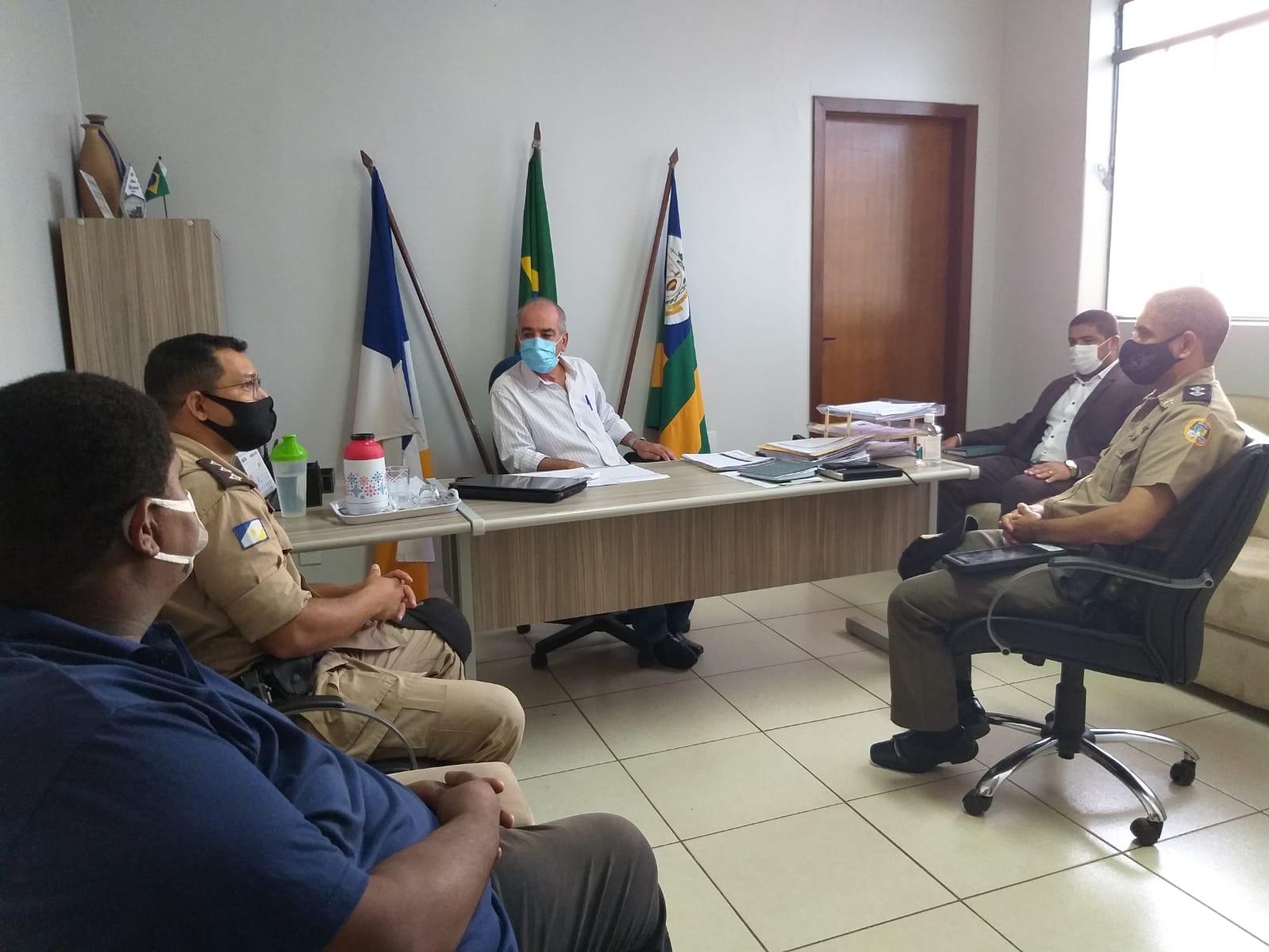 Além do prefeito José Salomão, o Capitão Tiago Melo e o Tenente Aldery, participaram da reunião o vereador Marcelo Rodrigues e o assessor executivo Tiago Cardoso.